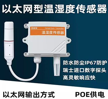 壁掛王子殼以太網(wǎng)溫濕度傳感器將采集的溫濕度數(shù)據(jù)通過(guò)以太網(wǎng)的通訊方式上傳到遠(yuǎn)程管理軟件。